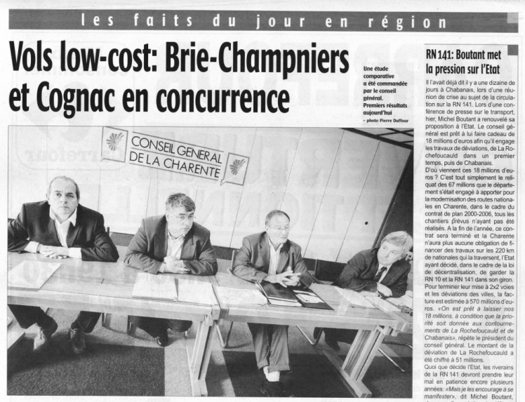 La CdC vue par la presse : 24 mai 2006 (Aéroports Angoulême et Cognac) La CdC vue par la presse : 24 mai 2006 (Aéroports Angoulême et Cognac) |