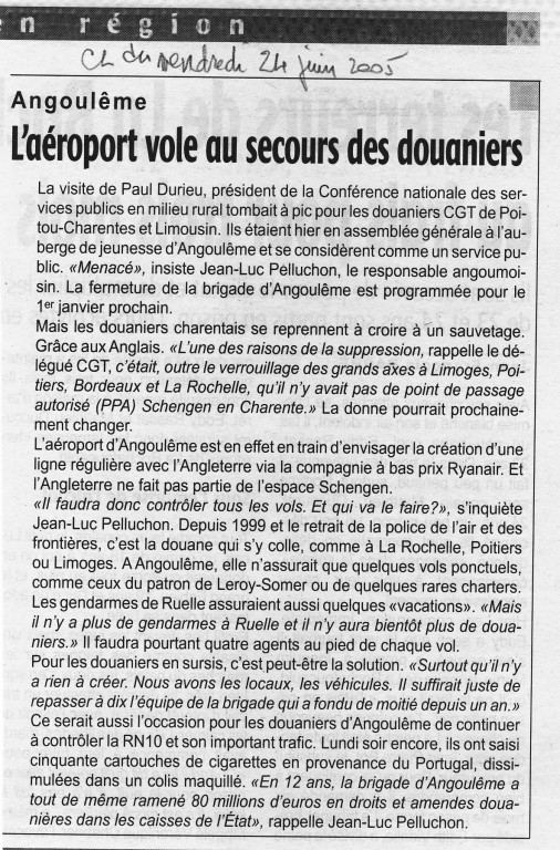 La CdC vue par la presse : 24 juin 2005 (Aéroport - Douanes) La CdC vue par la presse : 24 juin 2005 (Aéroport - Douanes) |