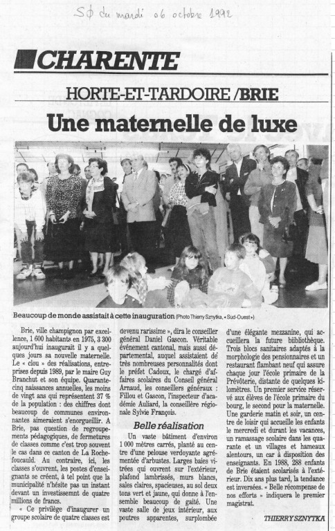 La commune vue par la presse : 6 octobre 1992 (école maternelle) La commune vue par la presse : 6 octobre 1992 (école maternelle) |